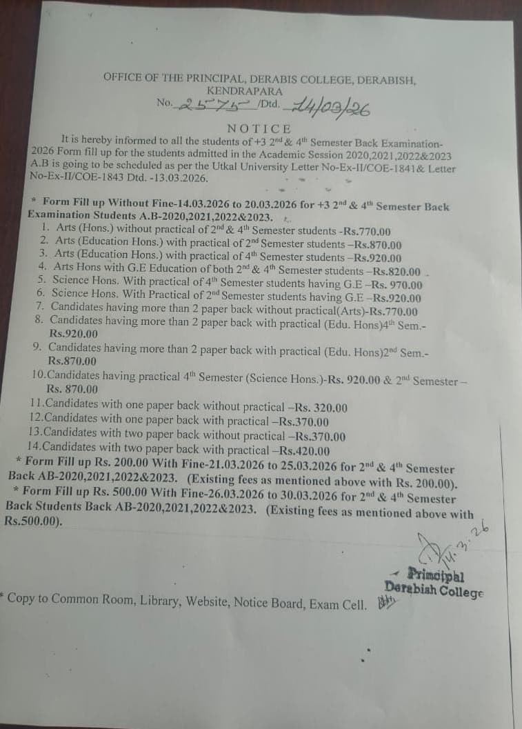 2nd and 4th semester Back form fillup notice