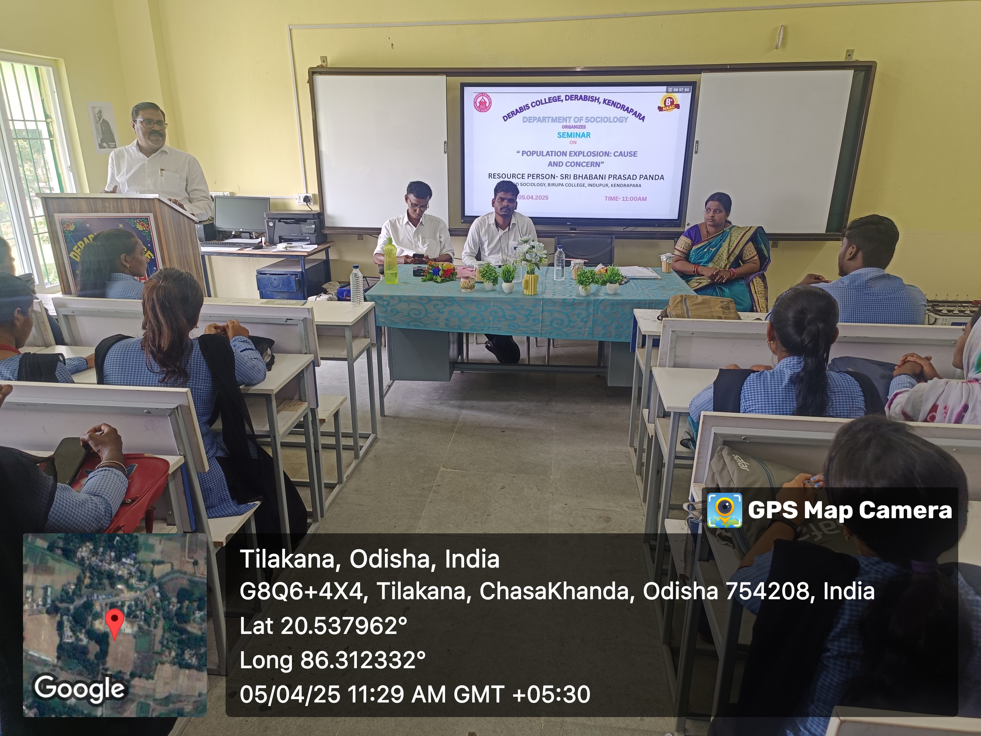 | 23-07-2025 | Extramural Lecture | The Department of Sociology in collaboration with IQAC organised an Extramural lecture on the topic "Born to Shine: The Girl Child as a symbol of Hope and Progress" in the department premises on 23.07.2025 in Presence of Chief Guest Sri Chandra Shekhar Nayak, Principal, Derabis College, Derabish, Kendrapara, and Mr. Anil Jena was the Chief Speaker of the event. The programme has also been graced by esteemed faculties of the department and college. | View File |