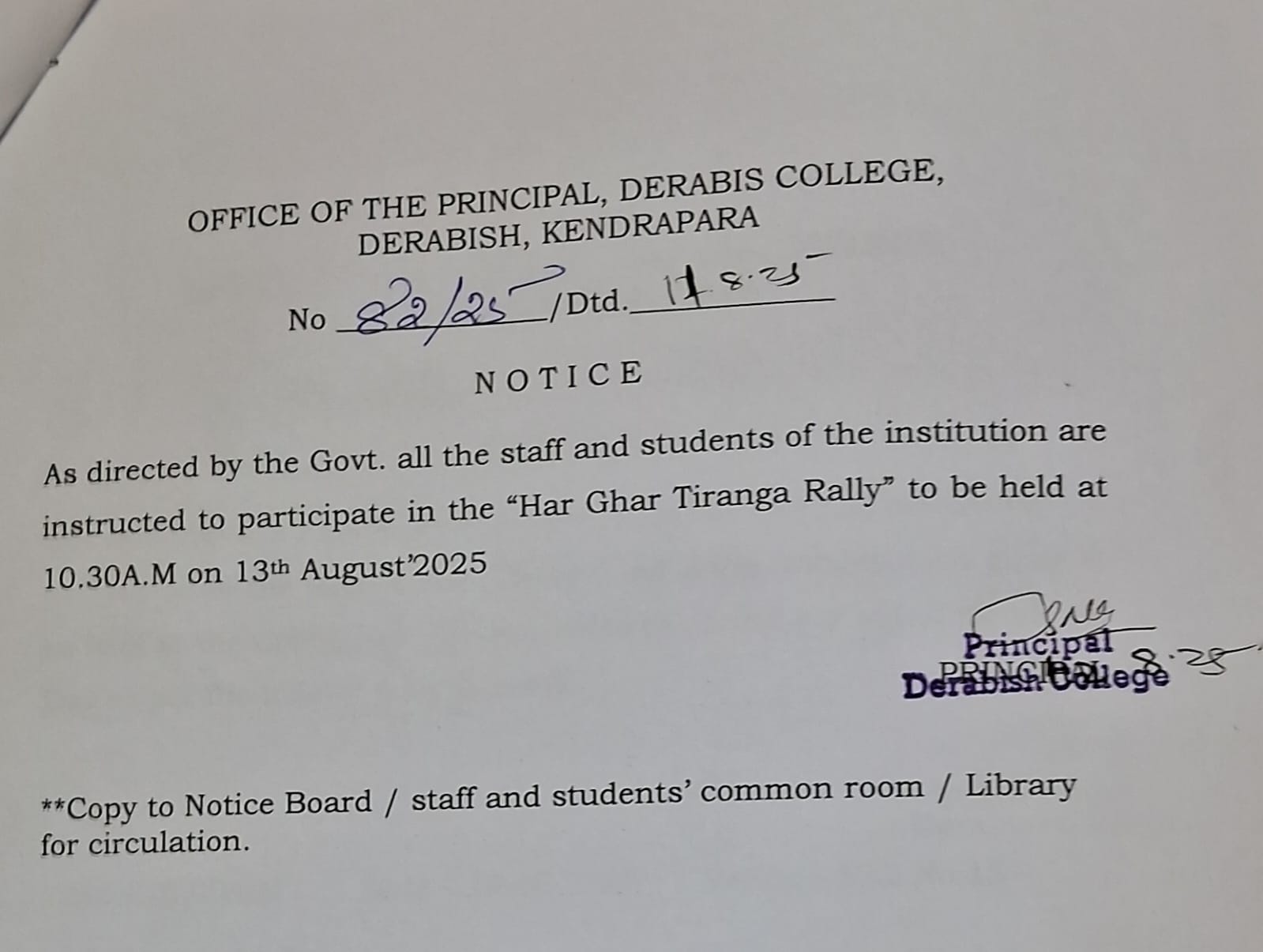 Tiranga Rally Notice