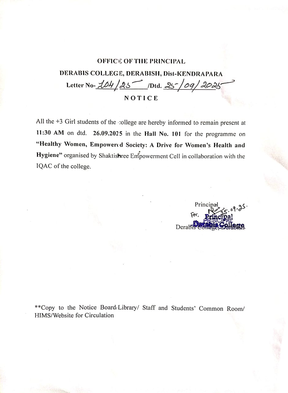 Healthy women empowered society a drive for womens health and hygiene Organised by Shaktishree Cell