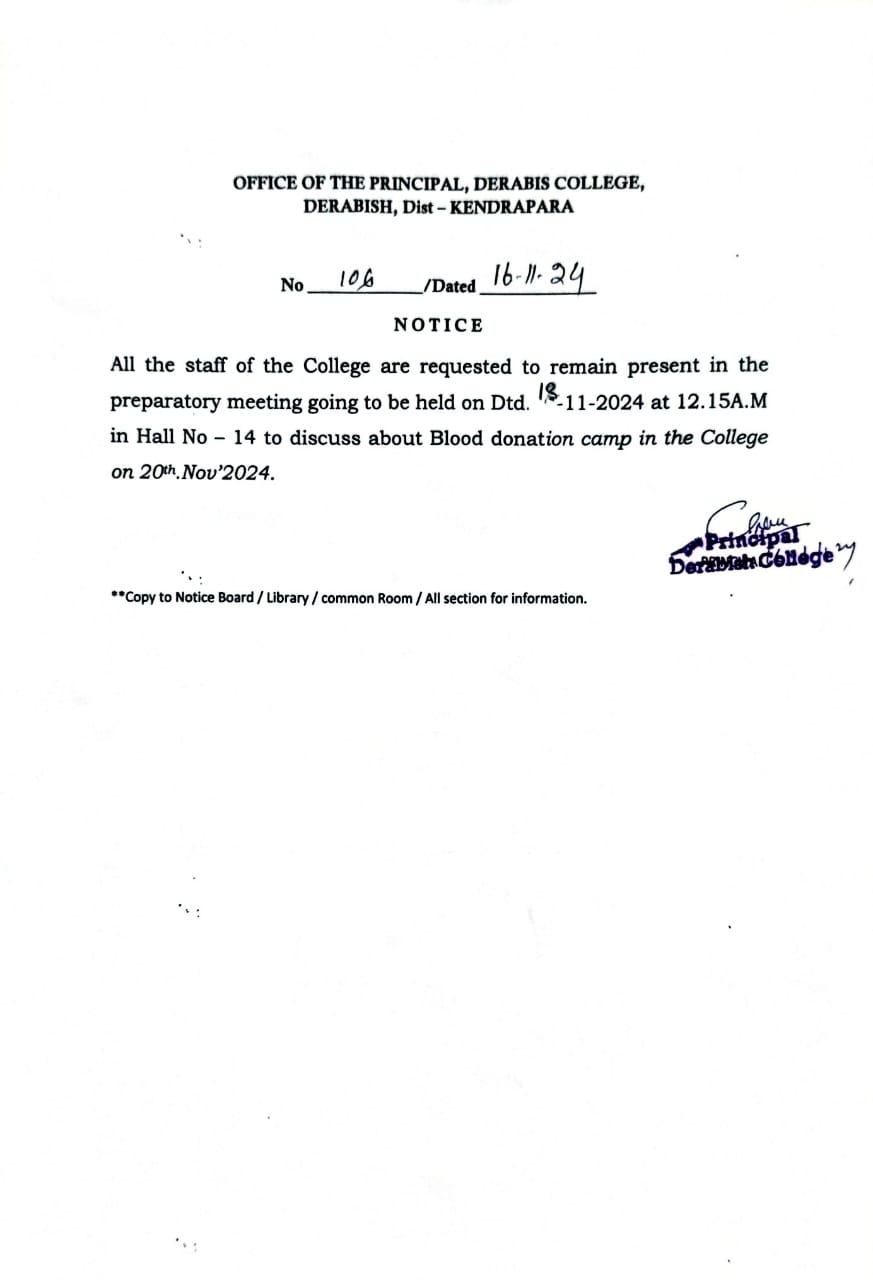 Notice for Preparation meeting of Blood Donation Camp