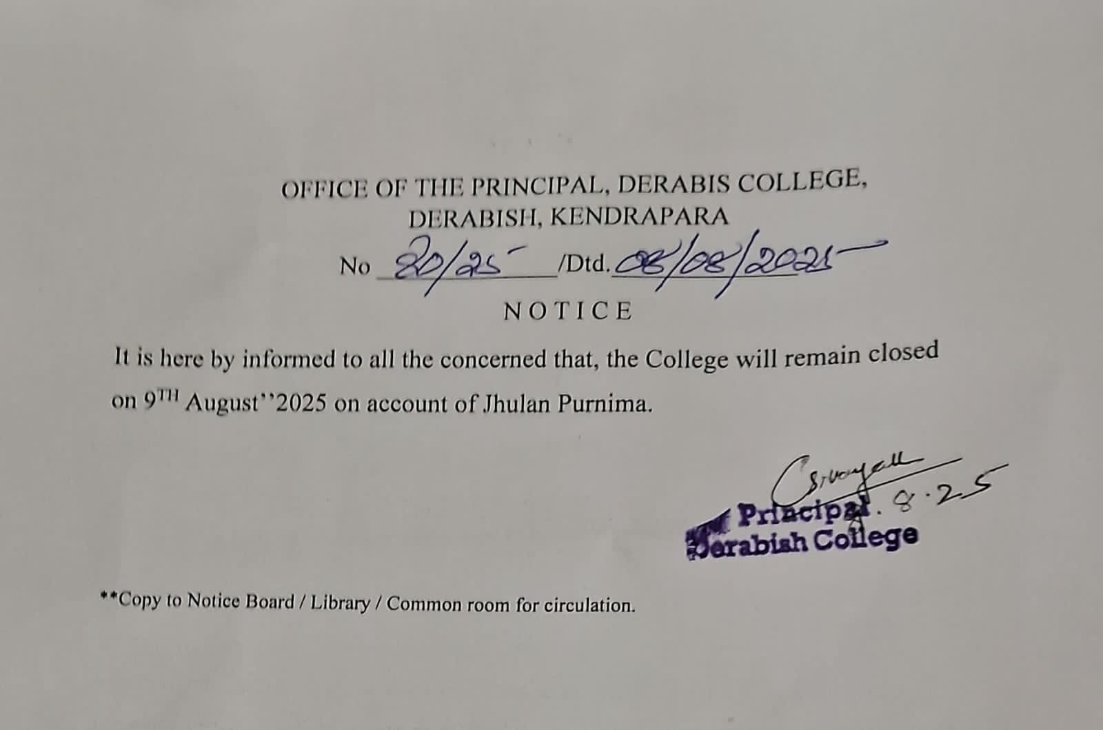 Holiday Notice