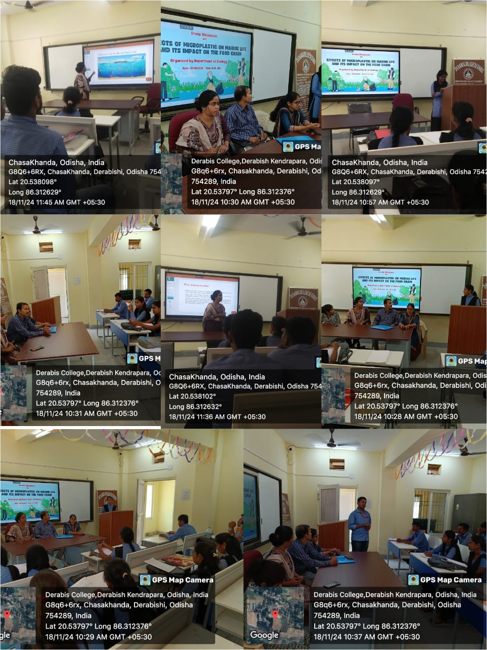 | 18-11-2024 | Group Discussion by Department of Zoology | Department of Zoology organises a group discussion on the topic : "Effects of microplastic on marine life and its impact on the food chain". The discussion was chaired by Biswajit Kumar Sahoo IQAC coordinator of Derabis College. He highlights the importance of group discussion in building communication skills among the students. Miss Bhagyalaxmi Sahoo, HOD Department of Zoology informed students about the harmful effects of microplastic on the marine ecosystem. Miss Subhashree Behera and Miss Pragyan paramita Pattnaik, lecturer in zoology also shared their views on the deadly effect of microplastic on the food chain. | View File |