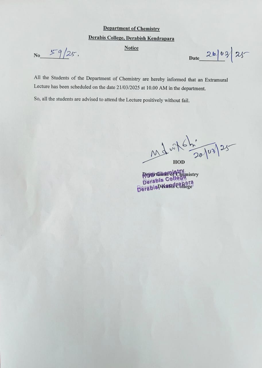 | 21-03-2025 | Extramural Lecture | Chemistry Department | View File |